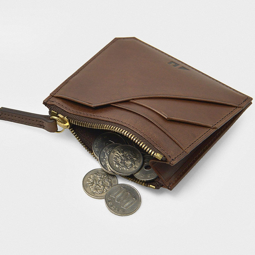 コインスペースがファスナー使用のため、コインに加えて折りたたんだお札を入れることができます。ポケットは3個あり、外側のポケットの形状を斜めにカットしたデザインにしたことで、カードが見えやすいだけではなく、出し入れしやすい仕様に仕立てました。