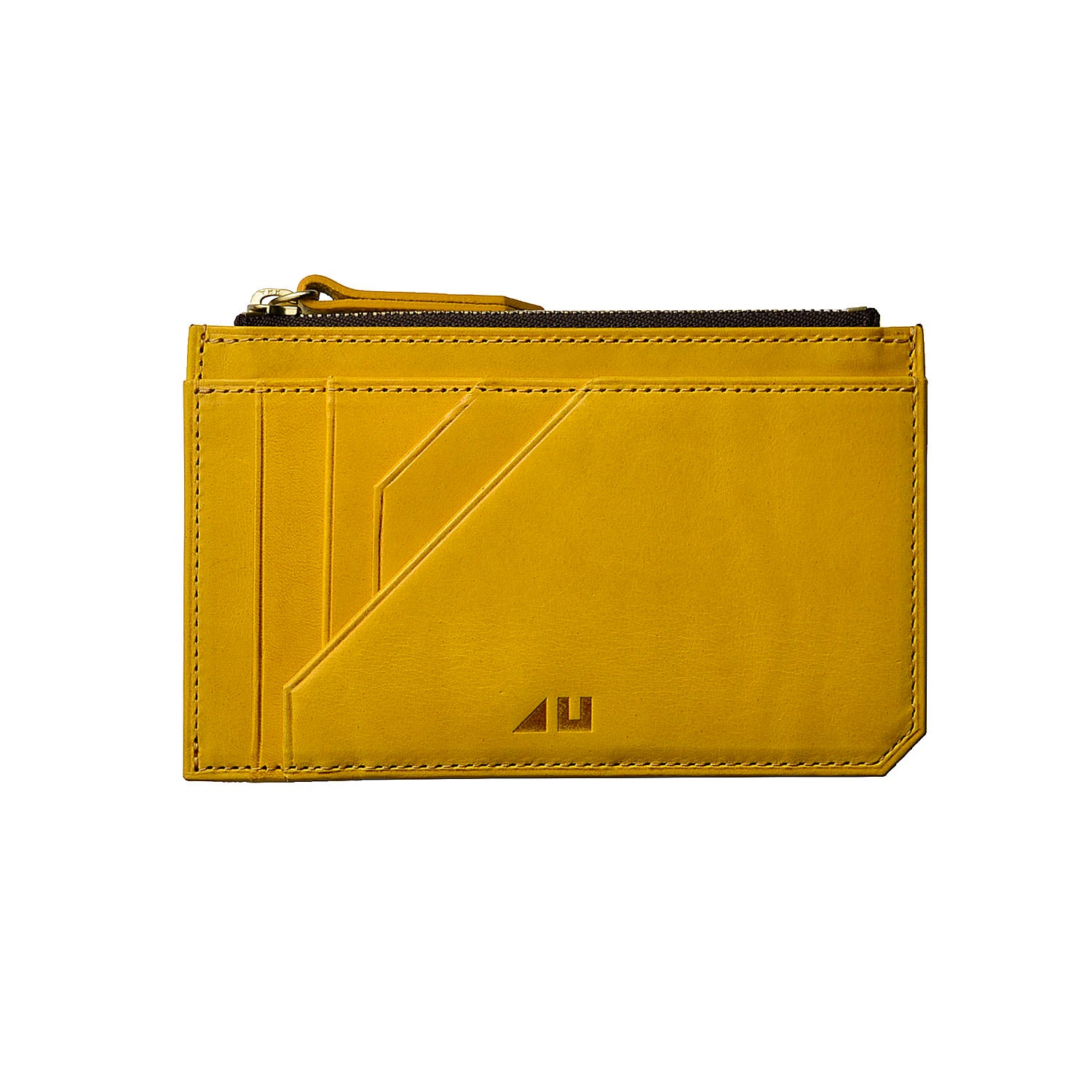 お財布の中身をコンパクトにまとめたい方には、お札を2つ折りで収納するフラグメントケースがおすすめです。コインスペースがファスナー使用のため、コインに加えて折りたたんだお札、レシートを入れることができます。ポケットは5個あり、外側のポケットの形状を斜めにカットしたデザインにしたことで、カードが見えやすいだけではなく、出し入れしやすい仕様に仕立てました。