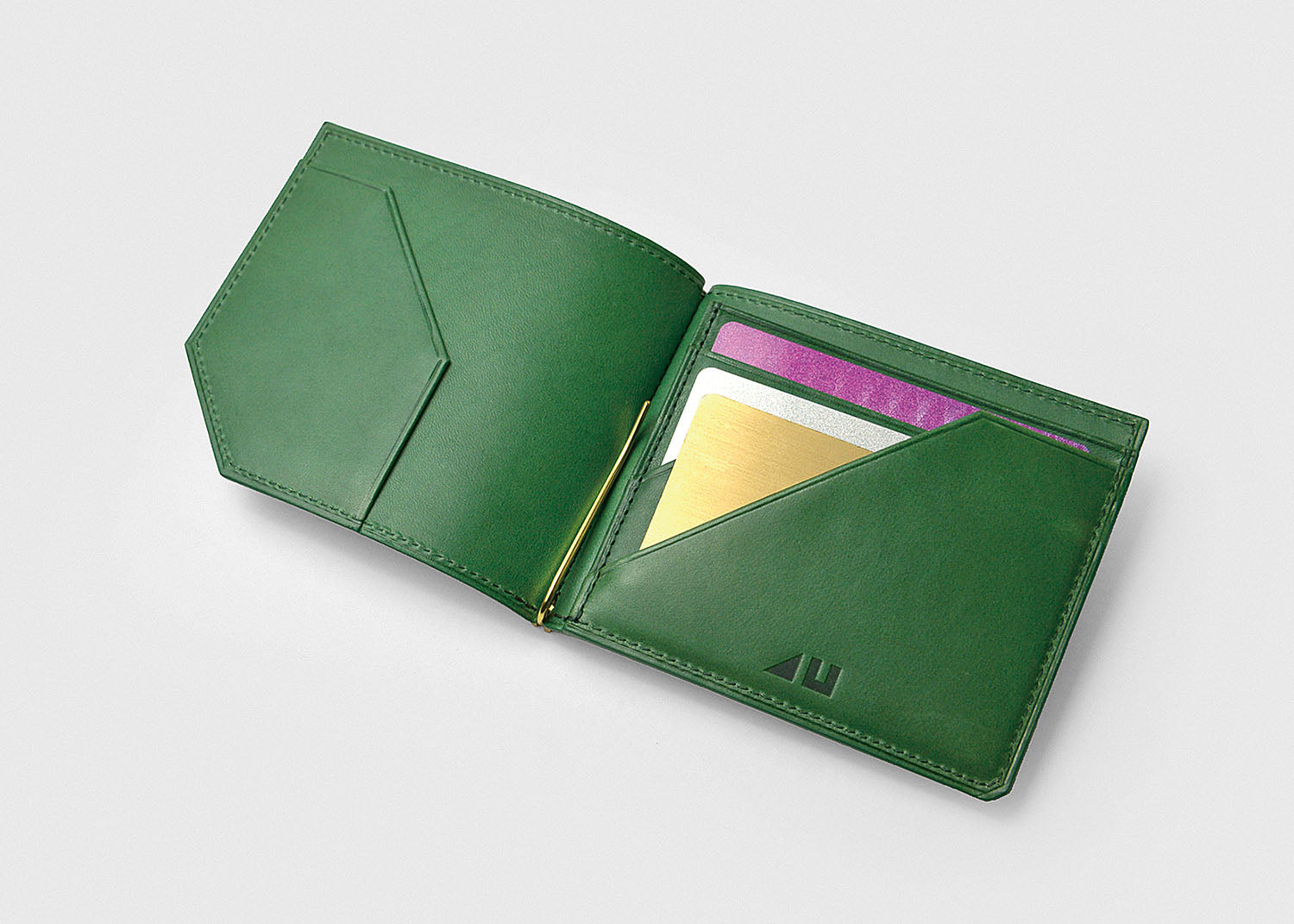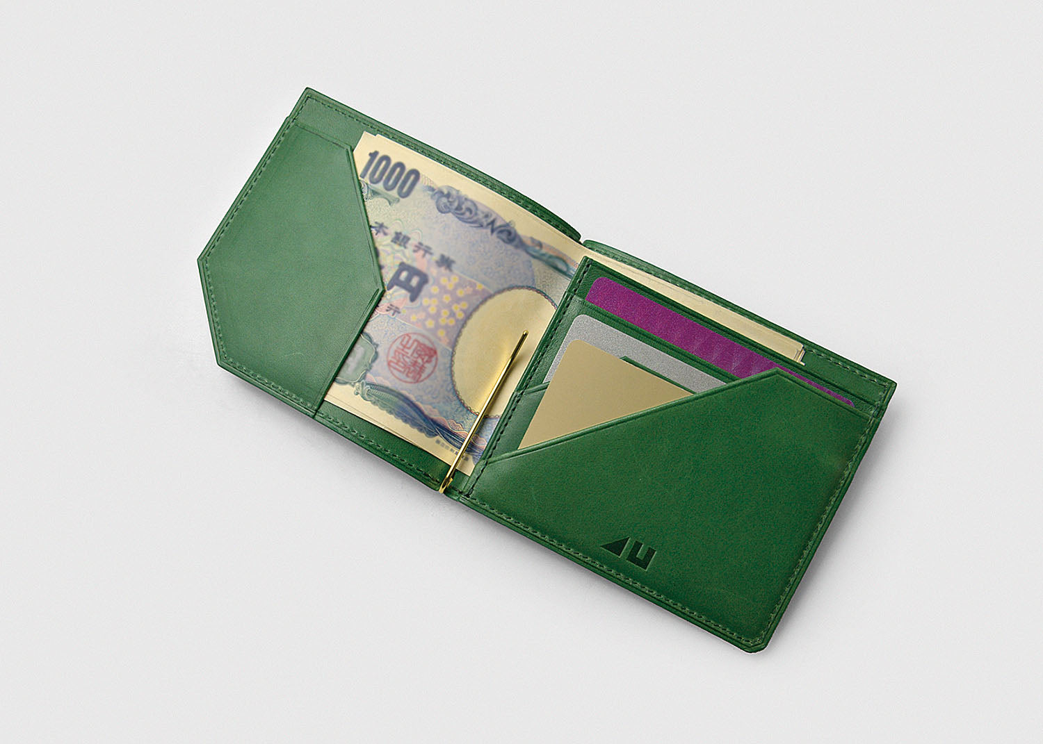 札ばさみクリップの外に、内側にはポケットが3個あるため、クレジットカードやICカードも入れていただけます。ポケットの形状を斜めにカットしたデザインにしたことで、カードが見えやすいだけではなく、出し入れしやすい仕様に仕立てました。