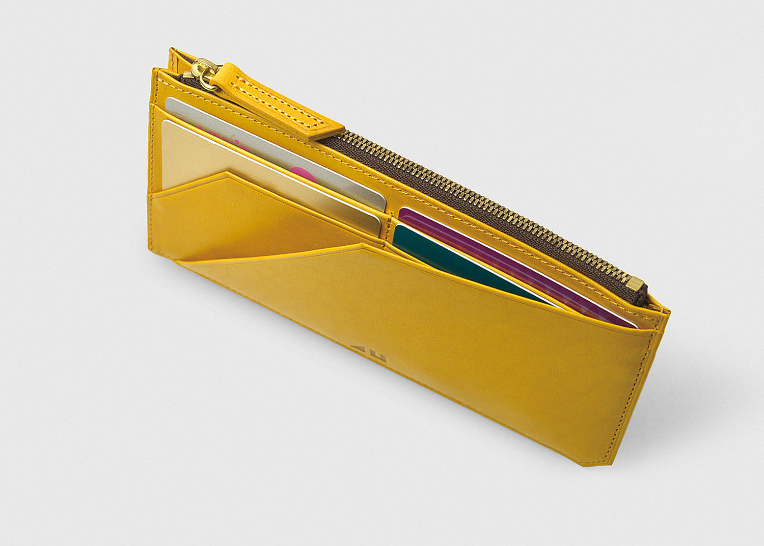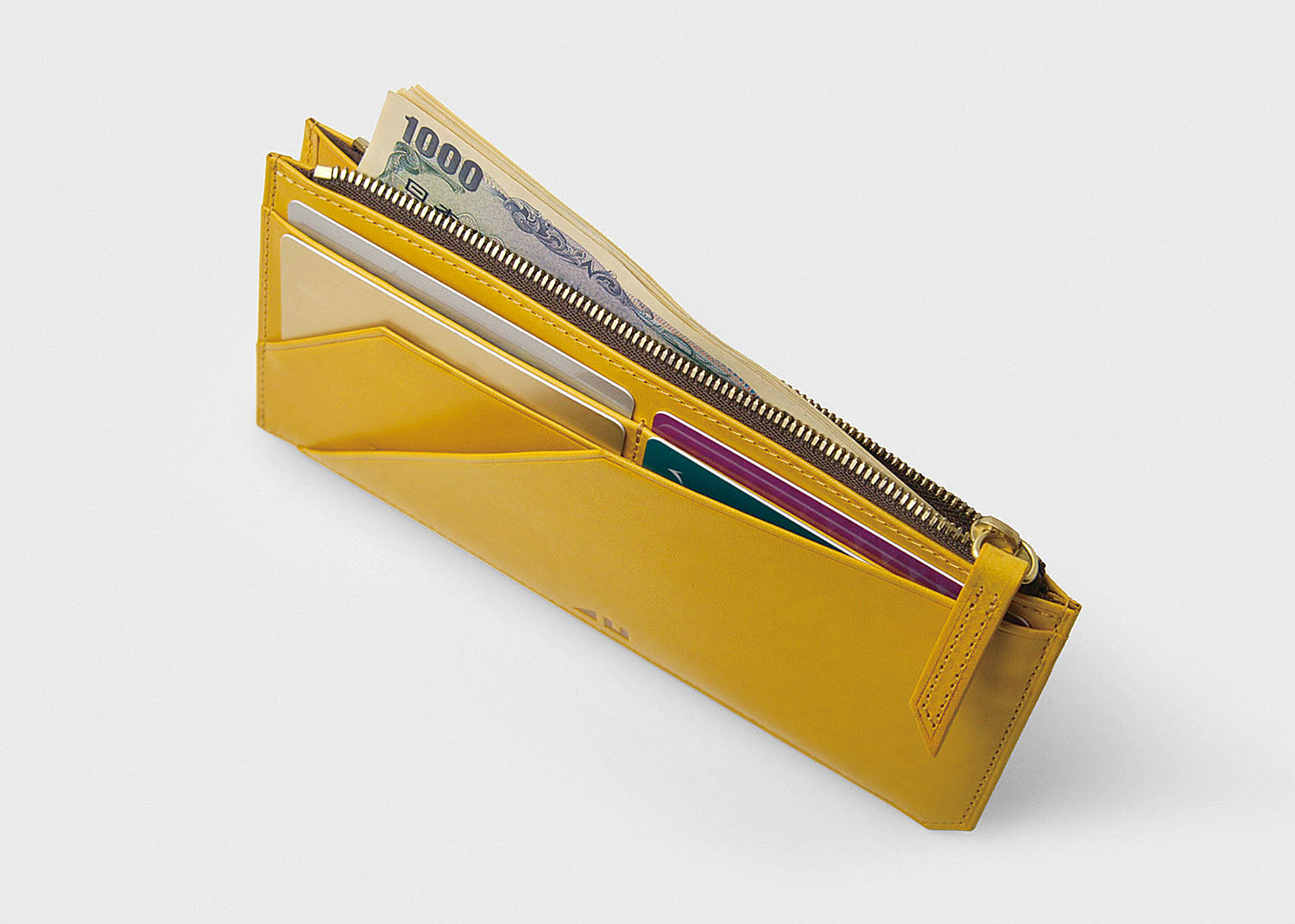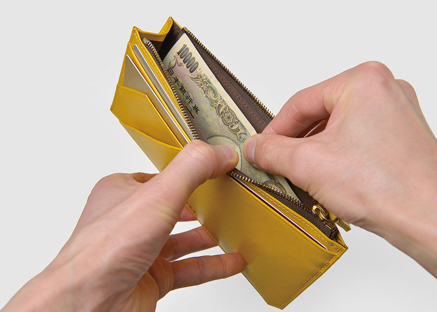横長のフラグメントケースは、お札を折らずに収納できる形です。