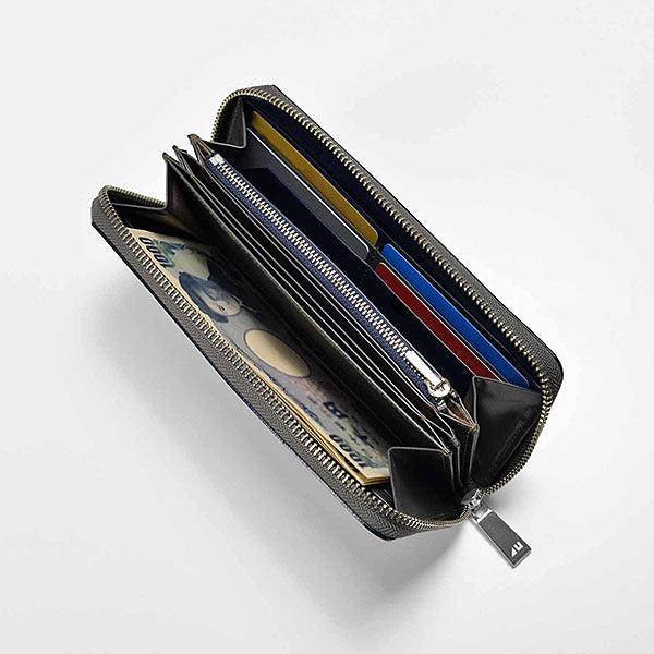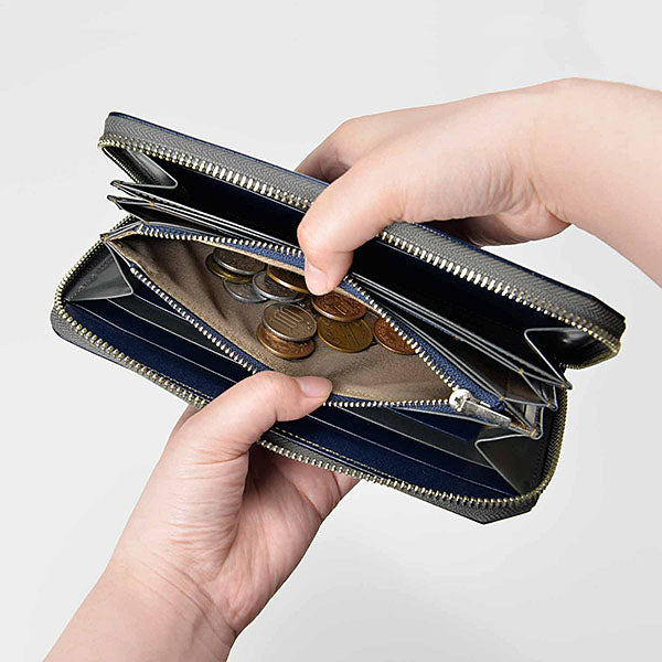 お財布本体にファスナーがついているため、中身が落下する心配がなく安心してお使いいただけます。