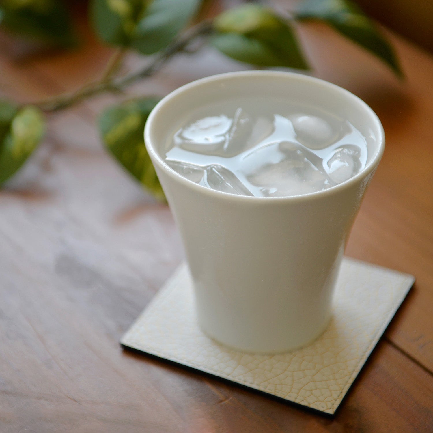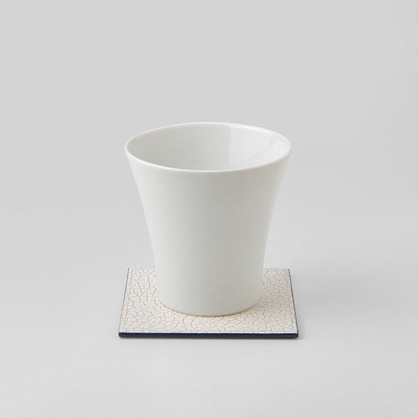 金継ぎをイメージしたコースターが白磁の白をさらに引き立てます。