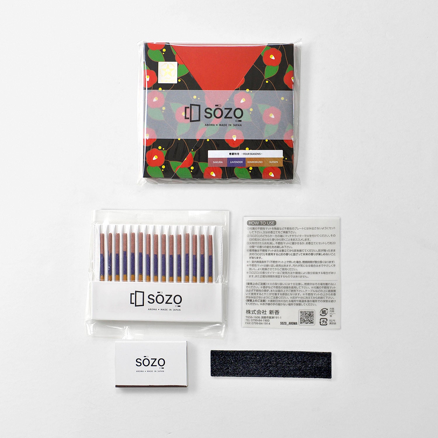燃焼時間は約20分。桜(約5分)/ラベンダー(約5分)/金木犀(約5分)/水仙(約5分)