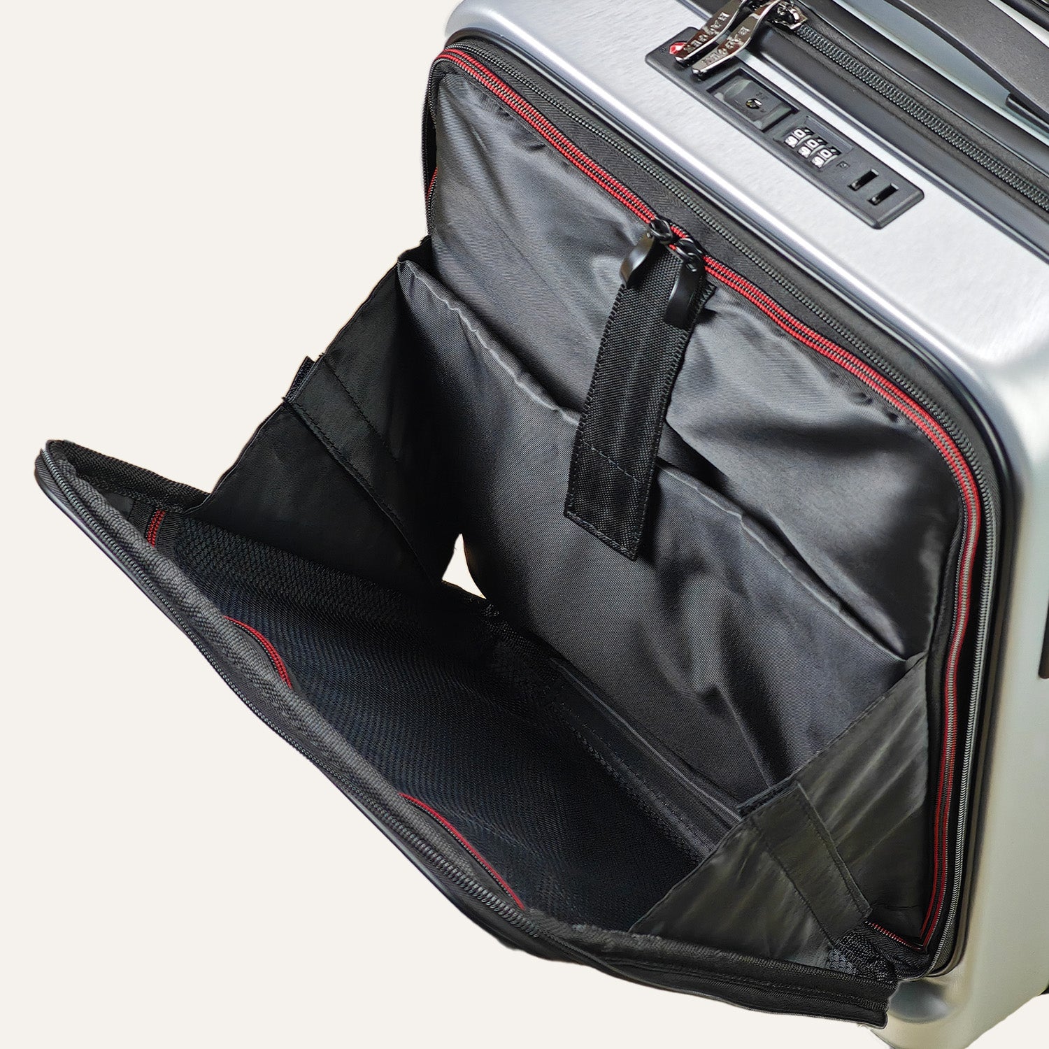 大きく開くフロントポケットで荷物の出し入れを容易に