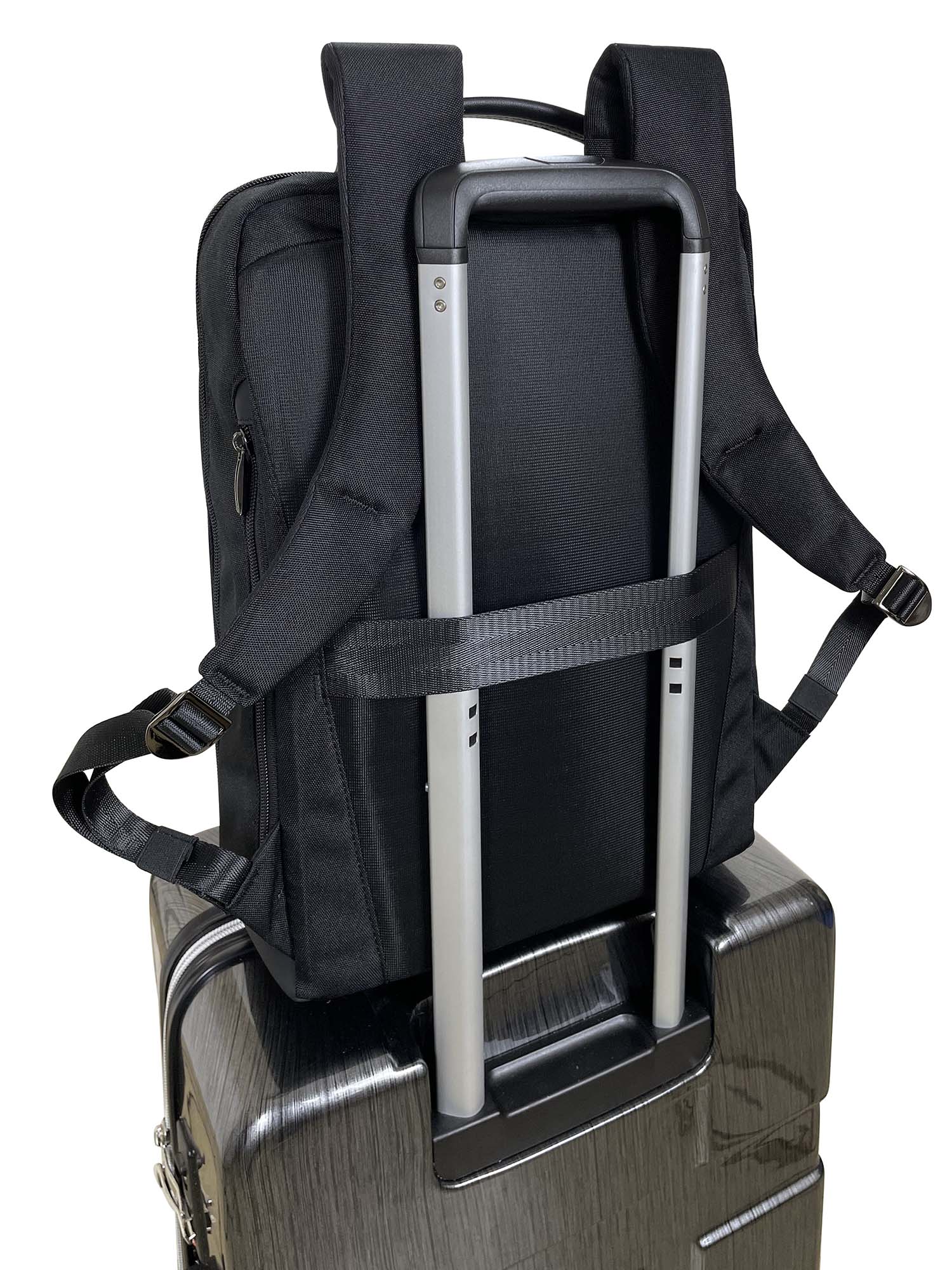 ・キャリーケースのバーに取り付けられるキャリーオン機能。